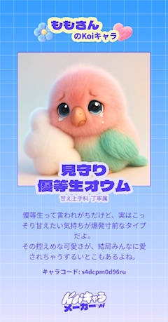 こんにちわ!ももです!🍑💗 またまた雪降ったねーーー⛄️❄️ 雪降りそうな気温だったけど また降ったからほんとに寒すぎる🥶 雪は勘弁してください。。。( ′д`) 今日は少し前にやってみた koiキャラ診断の紹介❤️🔥❤️🔥 診断系のやつたくさん見るけど 誰かがやってるの見つけると そういうのやりたくなっちゃうタイプ🙋🏻♀️🙋🏻♀️ 私の周りで5人くらいはやってたから わ!!これは流行りなのでは!!?!? やらねば🤩🤩🤩🤩🤩 ってなって、やってみたの。笑笑😃😃 正直、どれだけ種類あるかわかんないけど… わたしはコレだった⬇️⬇️⬇️ オウムちゃん🦜💓💓 泣いてるオウムなんだが(´;ω;`)❤️ これの詳細を読んでみると 面白いくらいに当たってて草( ᐛ )𐤔 特に、無理に引っ張り出そうとしないでってところ👍🏻 あとは、寝るのが何よりの趣味(笑)(笑)(笑) 趣味ってなんですか??って話になるけど ほんとに 寝ること🐑💤 って言いたいくらい休みの日は寝てる😴 食べることと寝ること大好き😏😏 注意ポイントもあったから載せとく⚠️⚠️ 当たりすぎてて笑う🤣🤣🤣🤣🤣🤣🤣 ここに書いてある通りです。 これをしっかり読んで わたしを取り扱ってください☝🏻☝🏻😆 これも割と当たってるから 当てはまる人いたら連絡ください📨💞 診断とか占い信じちゃうタイプだから 当てはまりすぎてるとビビっちゃう🤨🤨 見透かされてるなぁ〜〜〜👀 今日出勤だよ🩷🙋🏻♀️ 美味しいご飯食べて体力つけて出勤❤️🔥❤️🔥 イベント前頑張るぞーーーー!!!!💪 LuGuran+でお待ちしてます🍑🍑